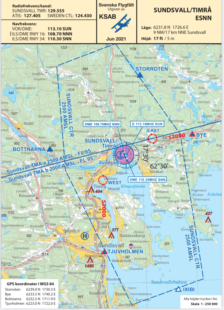 Ovanstående och nedanstående flygfältsblad är publicerade med godkännande av KSAK Service AB, källan är Svenska Flygfält, pilotshop.se.